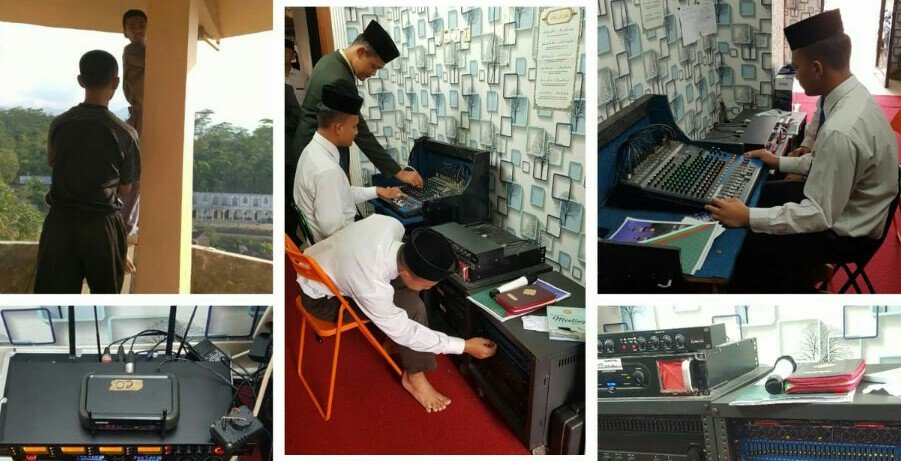 TAZAKKA – Saat Anda memasuki ruangan sound sistem Masjid Az-Zaky, Pondok Modern Tazakka, Anda akan melihat sederet perangkat sound sistem yang memenuhi ruangan itu. Ruangan itu sepenuhnya di bawah kendali dan dikelola oleh santri-santri Bagian Penerangan, OPPM (Organisasi Pelajar Pondok Modern) Tazakka.