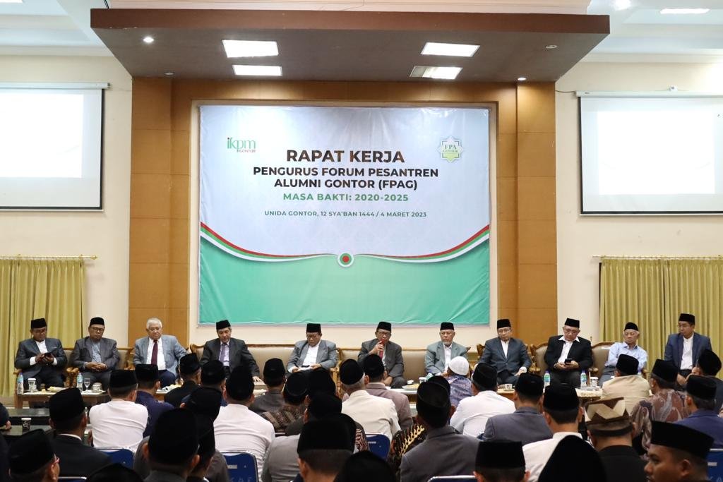 Forum Pesantren Alumni Gontor (FPAG) menggelar Rakernas dan Sarasehan Pengasuh Pesantren di Universitas Darussalam Gontor, Sabtu (4/3). Dalam kegiatan yang dihadiri oleh ratusan pengasuh pesantren itu, FPAG menghadirkan sejumlah tokoh bangsa yang juga merupakan para alumni Gontor.