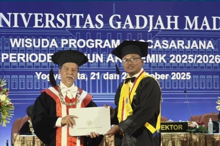 Sebelumnya, keduanya telah dinyatakan lulus setelah mampu mempertahankan tesisnya di hadapan para dosen penguji. Ustadz Khafifuddin lebih dulu lulus setelah menyelesaikan ujian tesis pada 2 Juli 2025 lalu. Di bawah bimbingan Prof. Dr. Sangidu, M.Hum. ia mampu menyelesaikan dan mempertahankan tesisnya yang berjudul: “Daur Hidup Manusia dari Kelahiran sampai Kematian dalam Arsitektur Masjid Sultan Hassan di Mesir: Analisis Semiotik Charles Sanders Pierce”.
