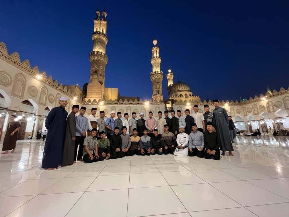 Kairo – Selasa, 7 Oktober 2025, Para peserta dauroh Pondok Modern Tazakka saat ini tengah berada di Masjid Al-Azhar, Kairo, salah satu pusat keilmuan Islam paling bersejarah di dunia. Masjid ini berdiri lebih dari seribu tahun yang lalu dan sejak awal telah menjadi tempat berkumpulnya para ulama, penuntut ilmu, serta pusat penyebaran ajaran Islam ke berbagai penjuru dunia. Hingga kini, Al-Azhar tetap kokoh sebagai mercusuar ilmu dan akhlak umat Islam.