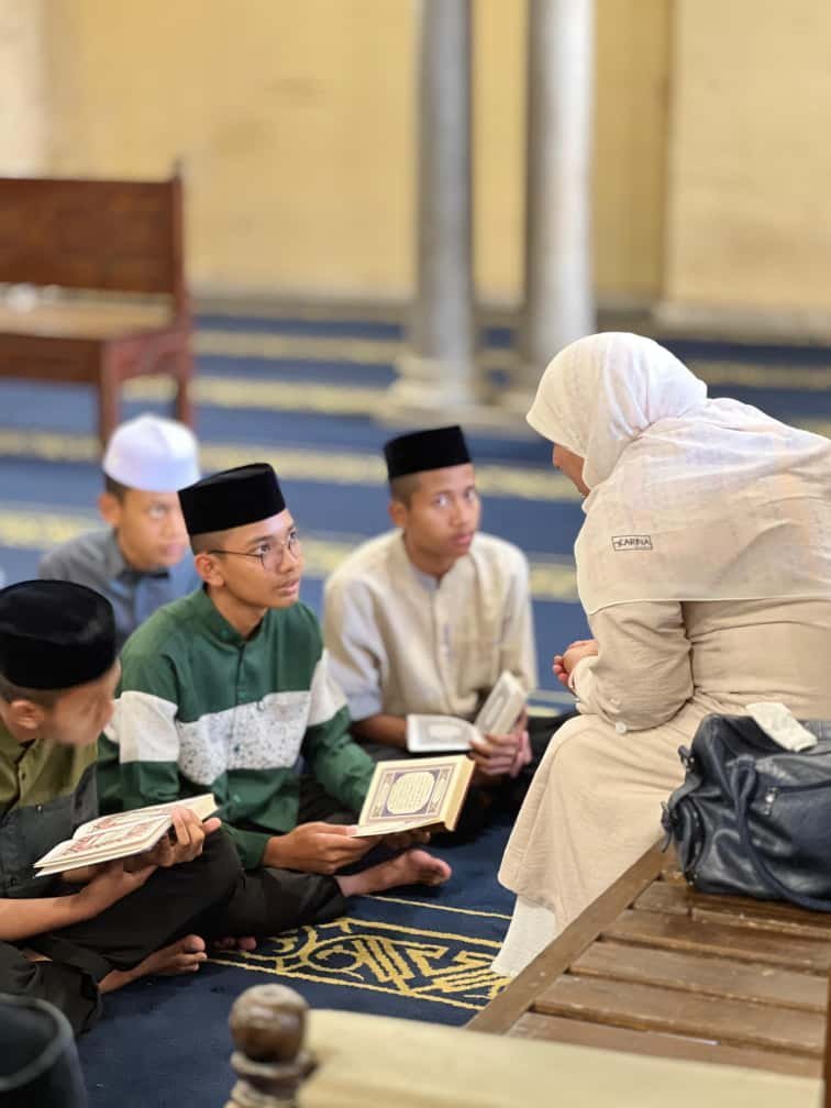 Di masjid bersejarah ini, para santri Tazakka mengikuti pengajaran Al-Qur’an secara langsung bersama para masyayikh, dalam suasana talaqqi yang telah menjadi tradisi utama Al-Azhar sejak berabad-abad lalu. Mereka duduk berhadapan dengan syekh, membaca ayat-ayat suci, lalu mendapatkan bimbingan serta koreksi bacaan. Setiap huruf, panjang pendek, dan makhraj diperhatikan dengan cermat sehingga bacaan sesuai dengan kaidah tajwid yang benar.