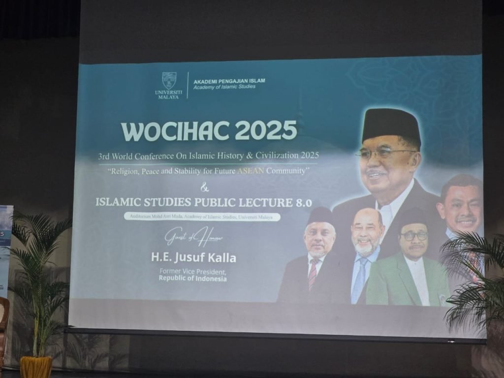 Kuliah umum tersebut disampaikan Jusuf Kalla sebagai keynote speaker dalam agenda World Conference on Islamic History and Civilization 2025 yang mengangkat tema “Religion, Peace, and Stability for Future ASEAN Community”.