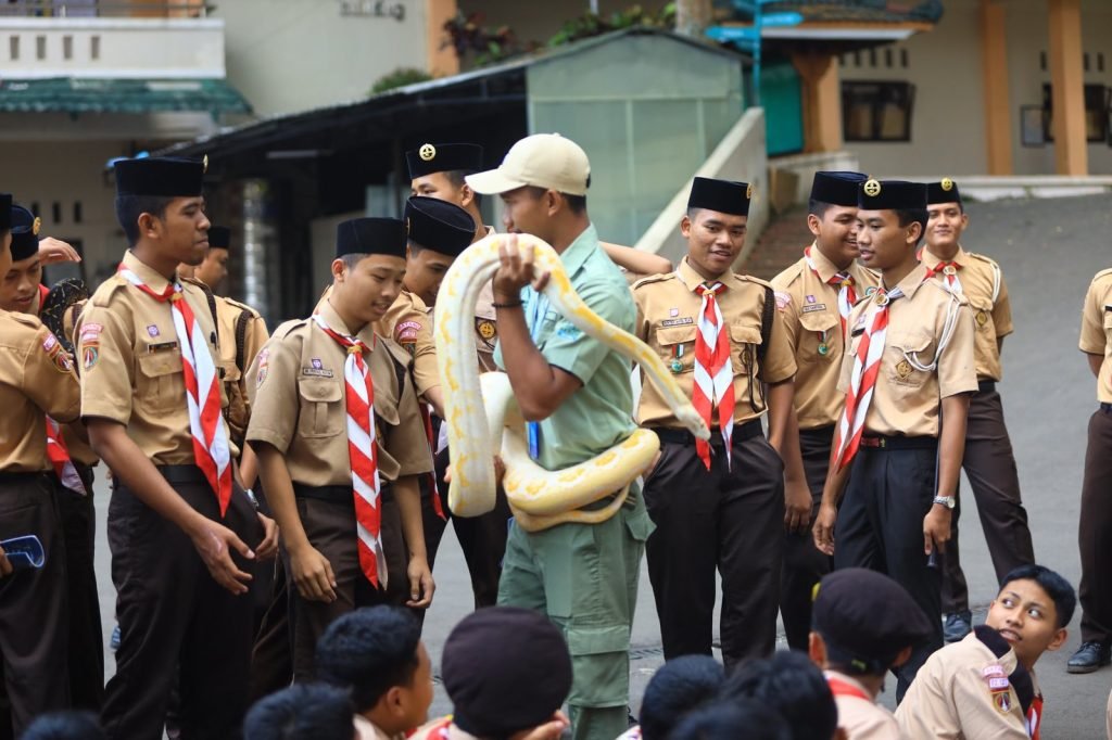 Tazakka — Dalam rangka meningkatkan wawasan dan kesiapsiagaan santri terhadap hewan berbahaya, Markas Besar Koordinator Gerakan Pramuka (Mabes KGP) Pondok Modern Tazakka mengadakan kegiatan Pramuka Tematik bertema “Pencegahan dan Pengendalian Binatang Buas” pada Kamis (16/10). Kegiatan ini merupakan bagian dari agenda wajib pekanan Pramuka yang diikuti oleh santri kelas 1–4 serta kakak pembina dari kelas 5 KMI.