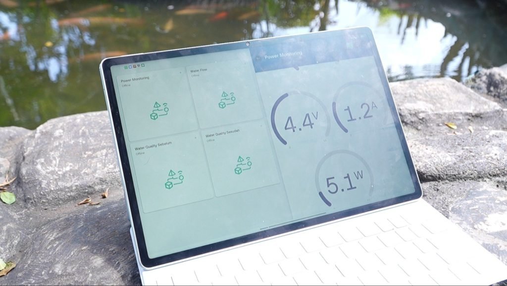 Menariknya, seluruh sistem dikontrol melalui sensor berbasis Arduino dan IoT yang memungkinkan pemantauan debit air, kejernihan, serta keluaran listrik secara realtime melalui ponsel Android.
