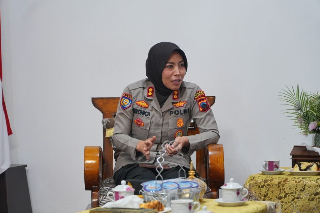 Kiai Anang menyambut beliau didampingi oleh Wakil Pengasuh, K.H. Oyong Shufyan, Lc., M.A., Ph.D. dan beberapa Kepala Departemen. Adapun Bu Veronica hadir didampingi Wakapolres Batang AKBP Hartono, S.H., M.H., Kabag SDM Kompol Suhadi, S.H., M.H., Kasat Intelkam Iptu Samsul Ma’arif, Kasat Lantas AKP Eka Hendra Ardiansyah, Kasi Humas AKP Sarjito, Kasi Propam AKP Sugiyono, dan Kapolsek Bandar Iptu Bagus Priyo Atmojo.