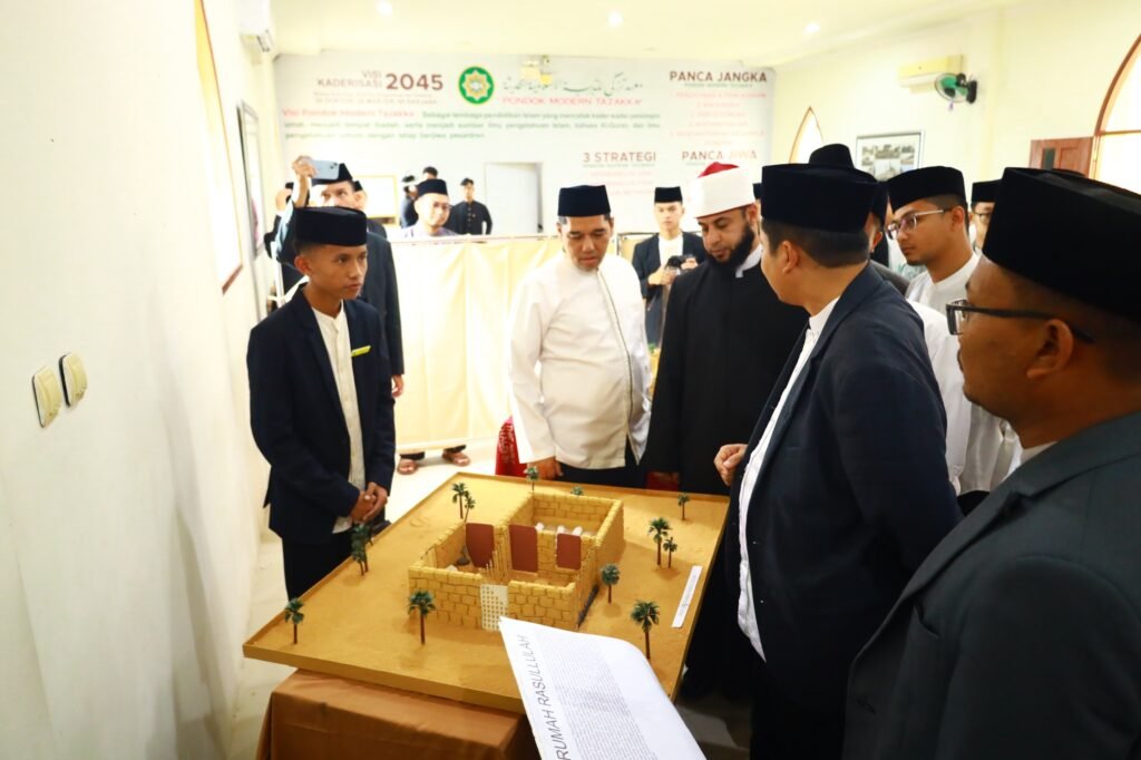 Tak hanya di area luar, bagian dalam Aula Rabithah juga menghadirkan sejumlah maket bernilai edukatif dan historis, di antaranya miniatur Masjidil Aqsha, Masjid Nabawi, serta Rumah Rasulullah ﷺ. Kehadiran maket-maket tersebut memberikan pengalaman visual yang memperkaya pemahaman pengunjung tentang sejarah Islam dan nilai-nilai peradabannya.