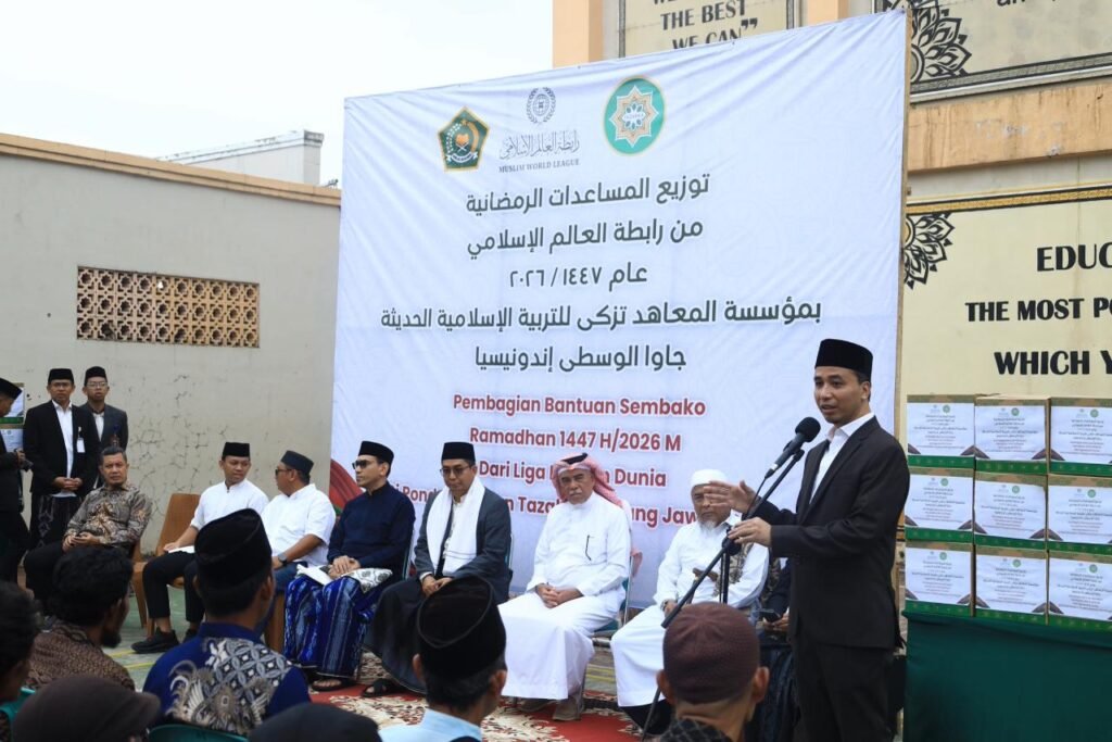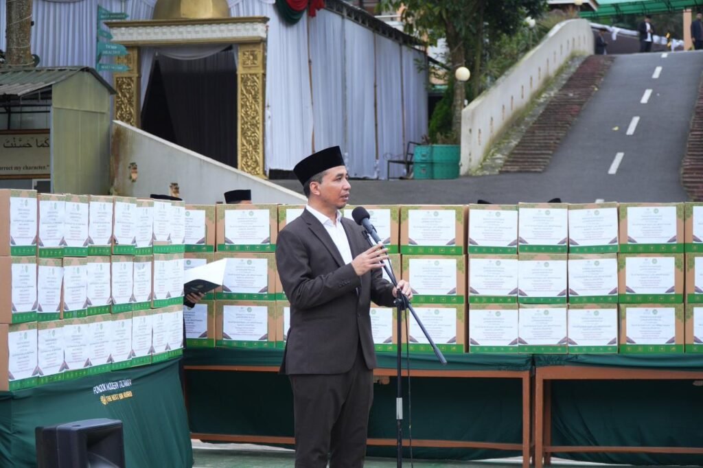 Tazakka — Lazis Tazakka kembali menyalurkan ribuan paket sembako kepada asnaf fakir miskin dan fi sabilillah, Ahad (1/3) di Lapangan Futsal Pondok Modern Tazakka. Pada edisi Ramadhan 1447 H ini, Lazis menggandeng Liga Muslim Dunia dan Anggota DPRD Jawa Tengah.