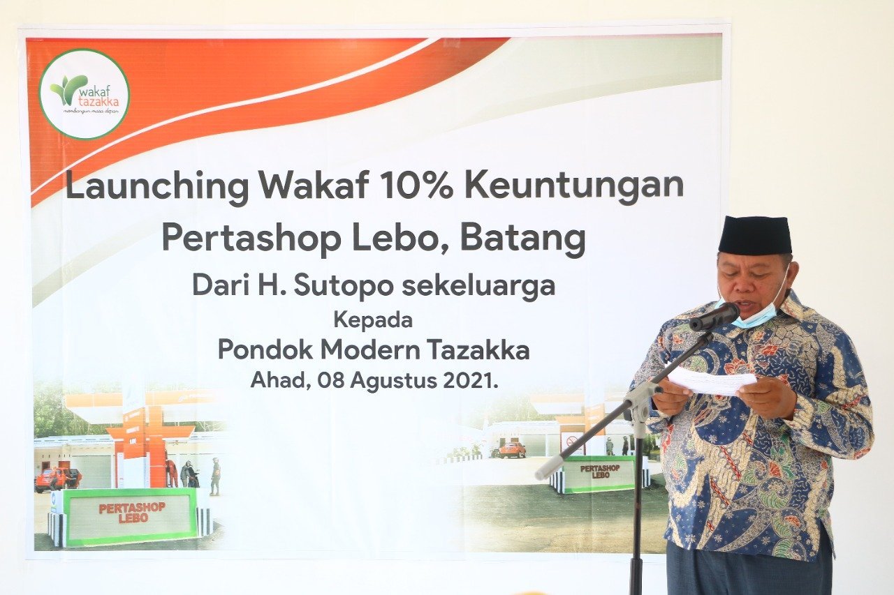 BATANG – Pondok Modern Tazakka kembali menerima wakaf jenis SPBU. Kali ini adalah wakaf 10% keuntungan dari Pertashop Lebo, Batang milik keluarga H. Sutopo. Launching wakaf Pertashop Lebo ini dilaksanakan pada Ahad siang, 29 Dzulhijjah 1442 bertepatan dengan 8 Agustus 2021.
