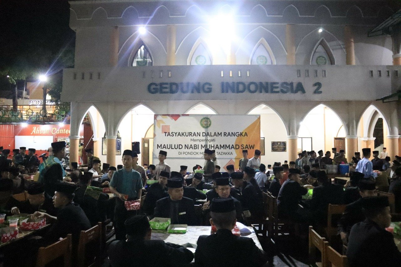TAZAKKA – Sebagaimana tradisi di Tazakka, momentum peringatan Maulid Nabi Muhammad SAW disemarakkan dengan berbagai kegiatan keagamaan dan kemasyarakatan. Salah satunya, adalah kegiatan berbagi keberkahan dalam bentuk makan gratis, tebar berkat dan berbagi sembako.