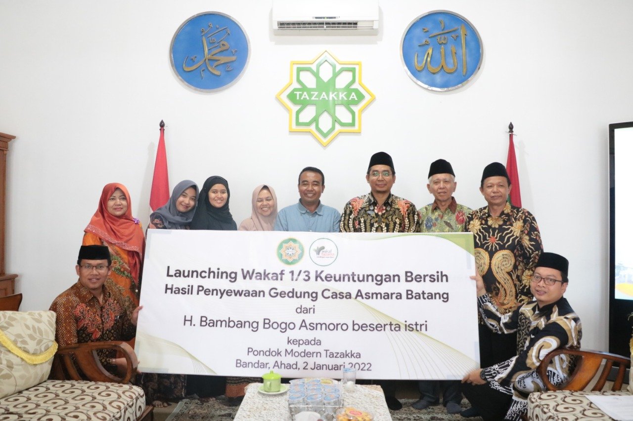 TAZAKKA – Pondok Modern Tazakka kembali menerima wakaf dengan pola partnership, yaitu wakaf sepertiga hasil sewa Gedung Casa Asmara milik keluarga H. Bambang Bogo Asmoro.