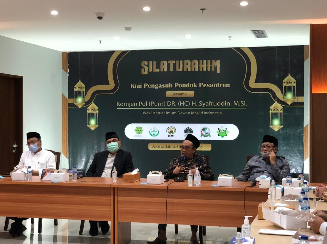 JAKARTA – Wakil Ketua Umum Dewan Masjid Indonesia (DMI) Komjen Pol (Purn) Syafruddin menggelar silaturahim dengan para kiai pengasuh pondok pesantren modern dan tradisional. Silaturahim sendiri digelar di Kantor Pusat DMI, Jalan Matraman Raya, Jakarta Timur, Sabtu (5/2/2022) sore. Dalam kesempatan itu, Syafruddin mengajak para kiai pengasuh pondok pesantren modern dan tradisional yang hadir untuk mempersiapkan para santri menjadi cendikiawan muslim guna menyongsong bonus demografi di 2030. “Para santri akan menduduki sentral-sentral seluruh aspek kehidupan bukan hanya di dakwah, bukan hanya tentang agama, tapi di bidang ekonomi, sosial dan masyarakat,” kata Syafruddin dalam sambutannya.