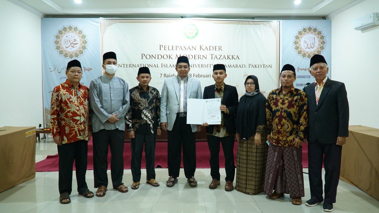 TAZAKKA – Salah seorang kader Pondok Modern Tazakka, Ustadz Firda Syam Chusni diterima di International Islamic University Islamabad (IIUI), Pakistan. Seremoni pelepasan kader berangkat ke Islamabad dilaksanakan pada Selasa malam (8/2).