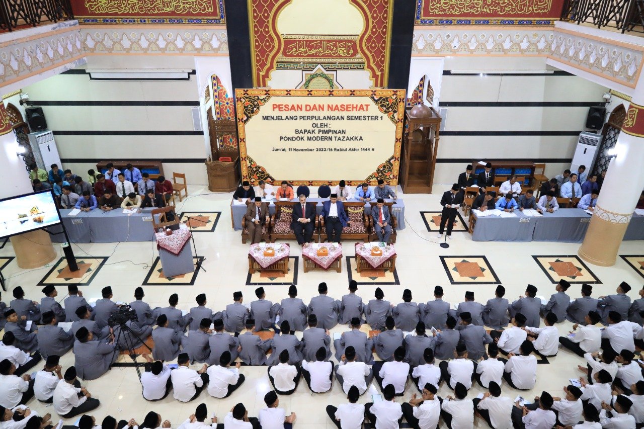 Santri Pondok Modern Tazakka tengah jalani masa liburan semester satu. Diantara syarat untuk menjalani waktu berlibur tersebut, santri harus mendengarkan petuah Bapak Pimpinan yang dikemas dalam Pesan dan Nasehat jelang Liburan semester pada