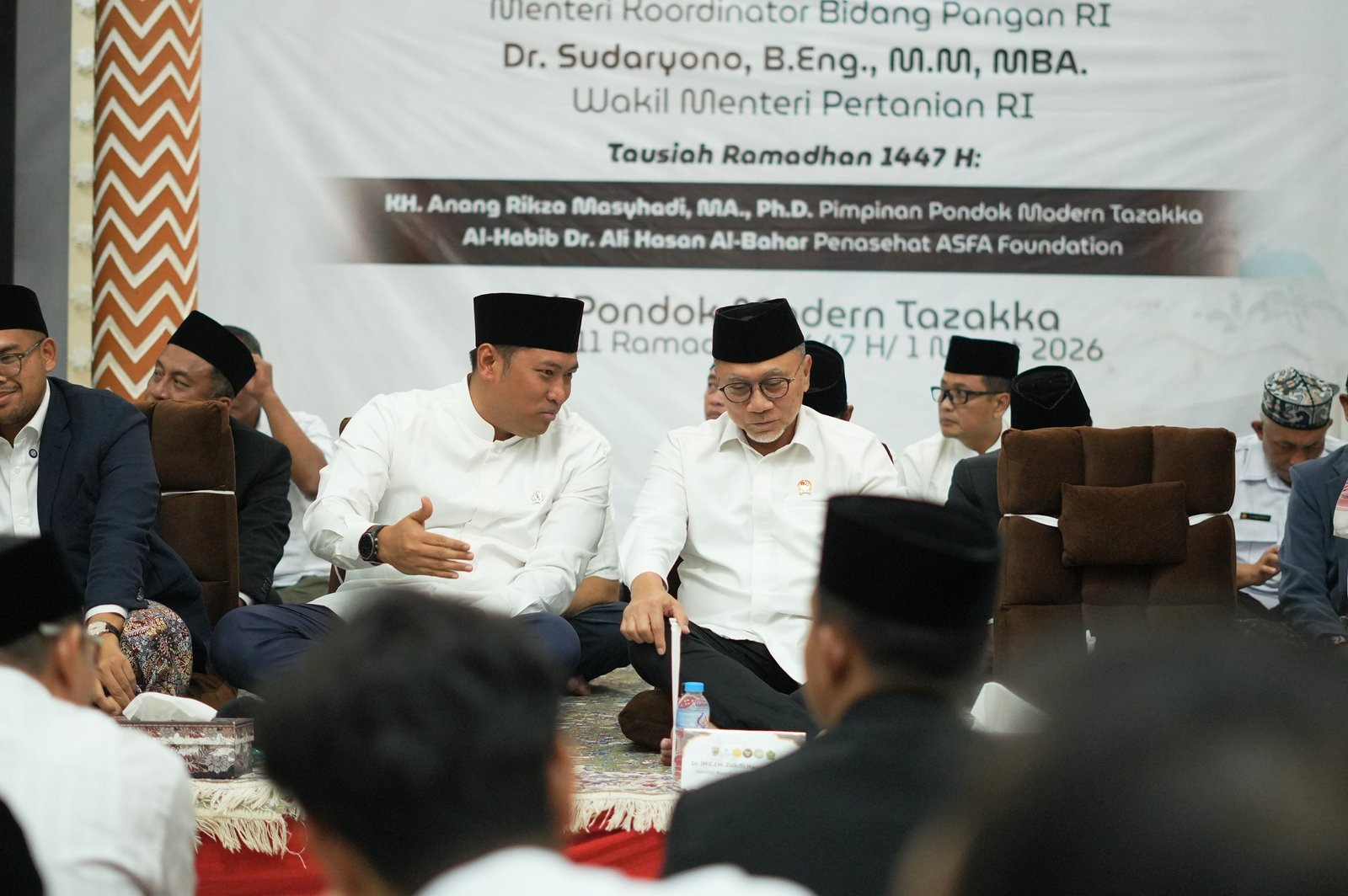 BATANG- Menko Pangan RI H. Zulkifli Hasan dan Wamentan RI H. Sudaryono hadiri Silaturahim Akbar, Buka Puasa Ramadhan dan Tarawih bersama 5000 muslimin di Pondok Modern Tazakka, Bandar, Batang, Jawa Tengah (1/3). Hadir juga Bupati Batang Faiz Kurniawan dan Forkompimda, Direktur Liga Muslim Dunia HE. Abdul Rahman Al-Khoyyat, Ketua Lazis ASFA H. Muchlis Hasyim Yahya, Penasehat ASFA Foundation Habib Dr. Ali Bahar.